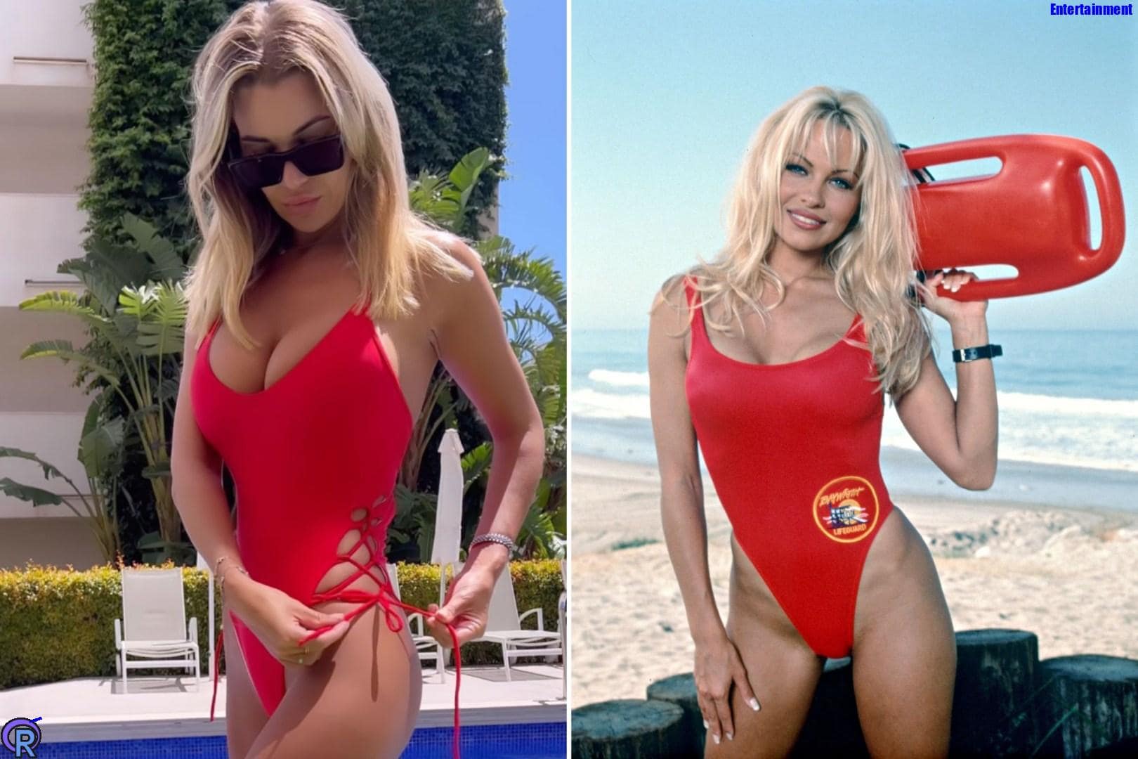 Baywatch one-piece in return for a trying two-piece set, yet in a similar red hot red tone. The entertainer has worked together with swimwear brand Frankie’s Swimming outfits for another assortment that sent off on May 4.